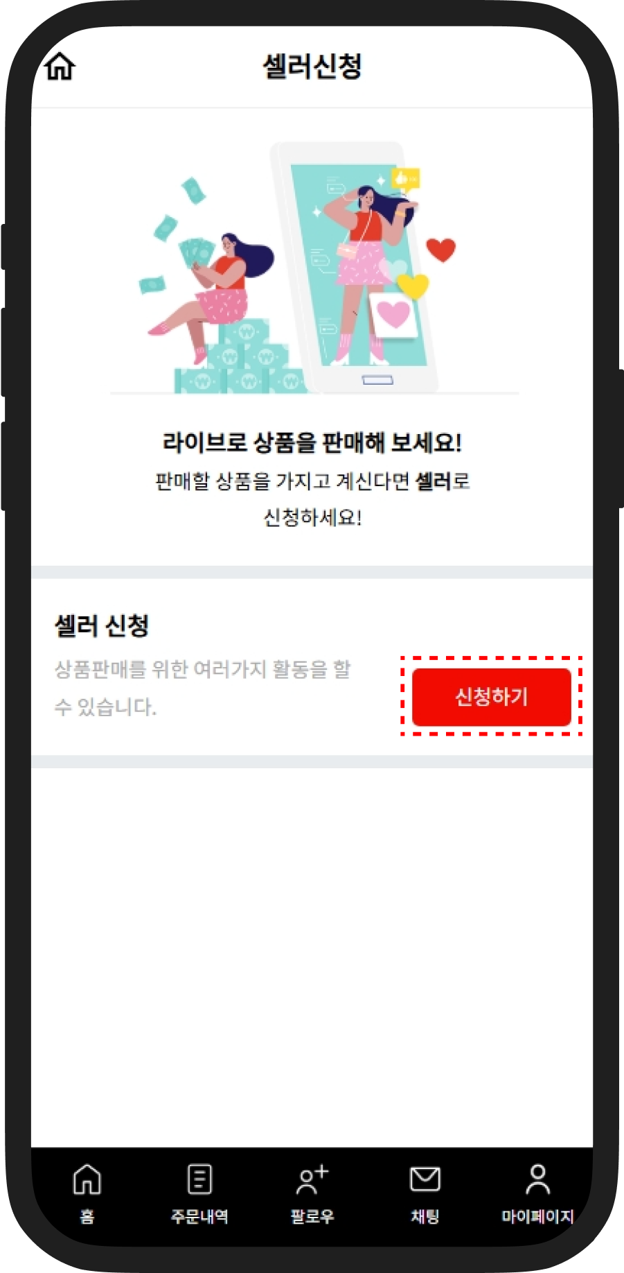 하단메뉴 셀러전용 원 클릭합니다.