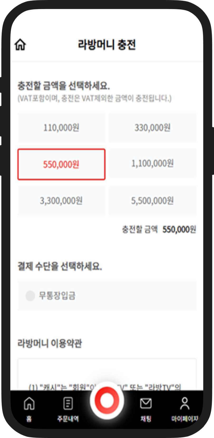 셀럽홈으로 이동하여, 라방머니를 충전합니다.