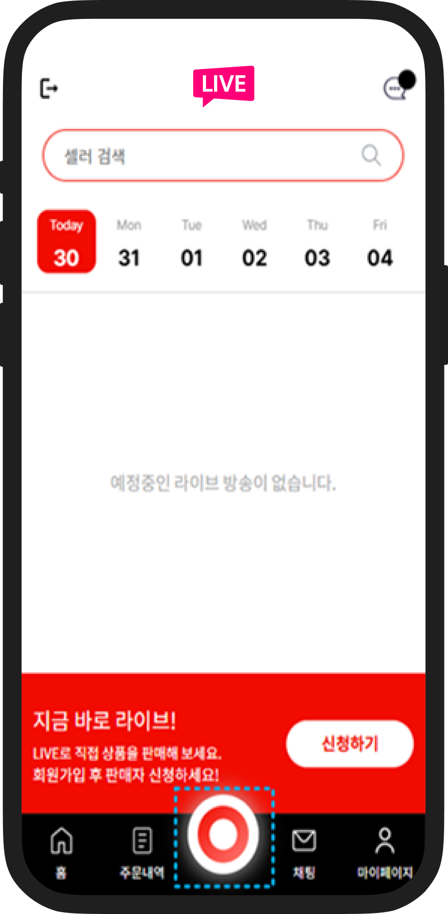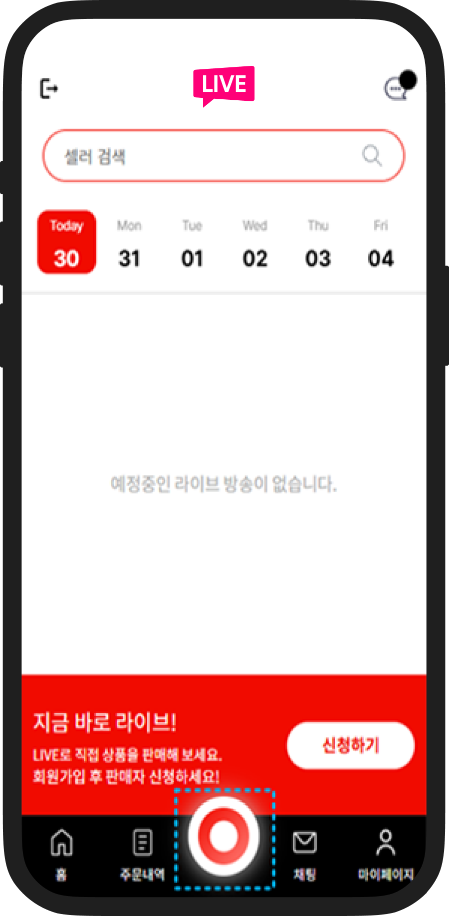라이브하기 클릭합니다.