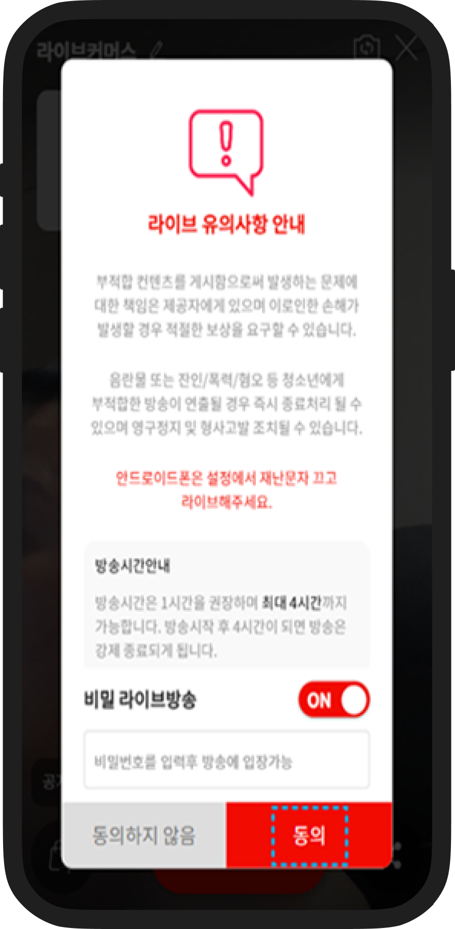 비밀라이브를 하실 경우 비밀번호를 설정하시면 됩니다.