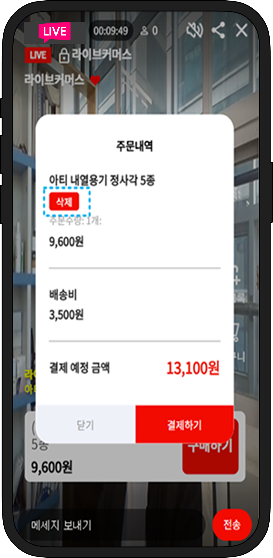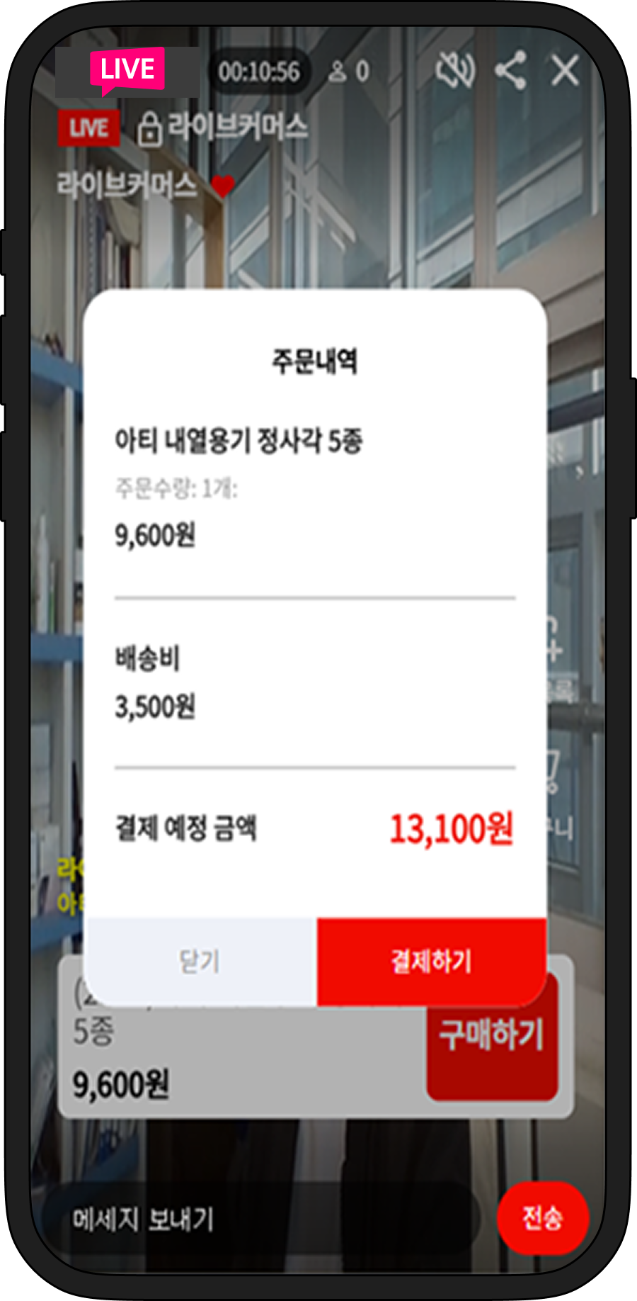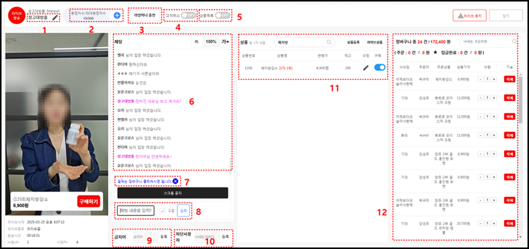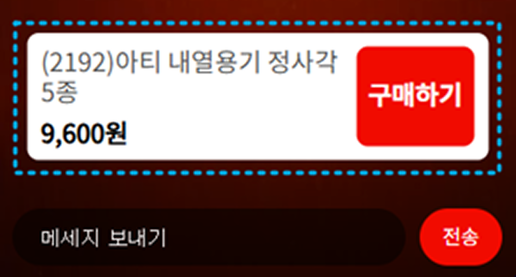 상품목록에서 구매 ON할 경우 시청자화면에 해당 상품의 구매하기창이 뜹니다.